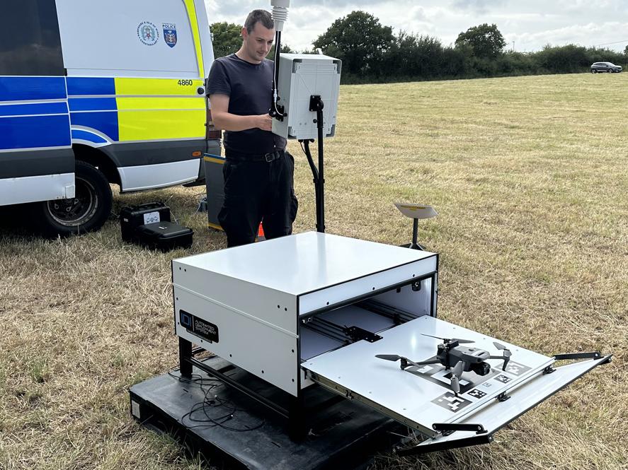The trial at the Isle of Wight Festival created a simulated ‘Drone as First Responder’ capability in addition to the force’s routine police drones resource and witnessed a drone being flown from an IDI Automated Deployment System (essentially a remote box from which the drone is launched).