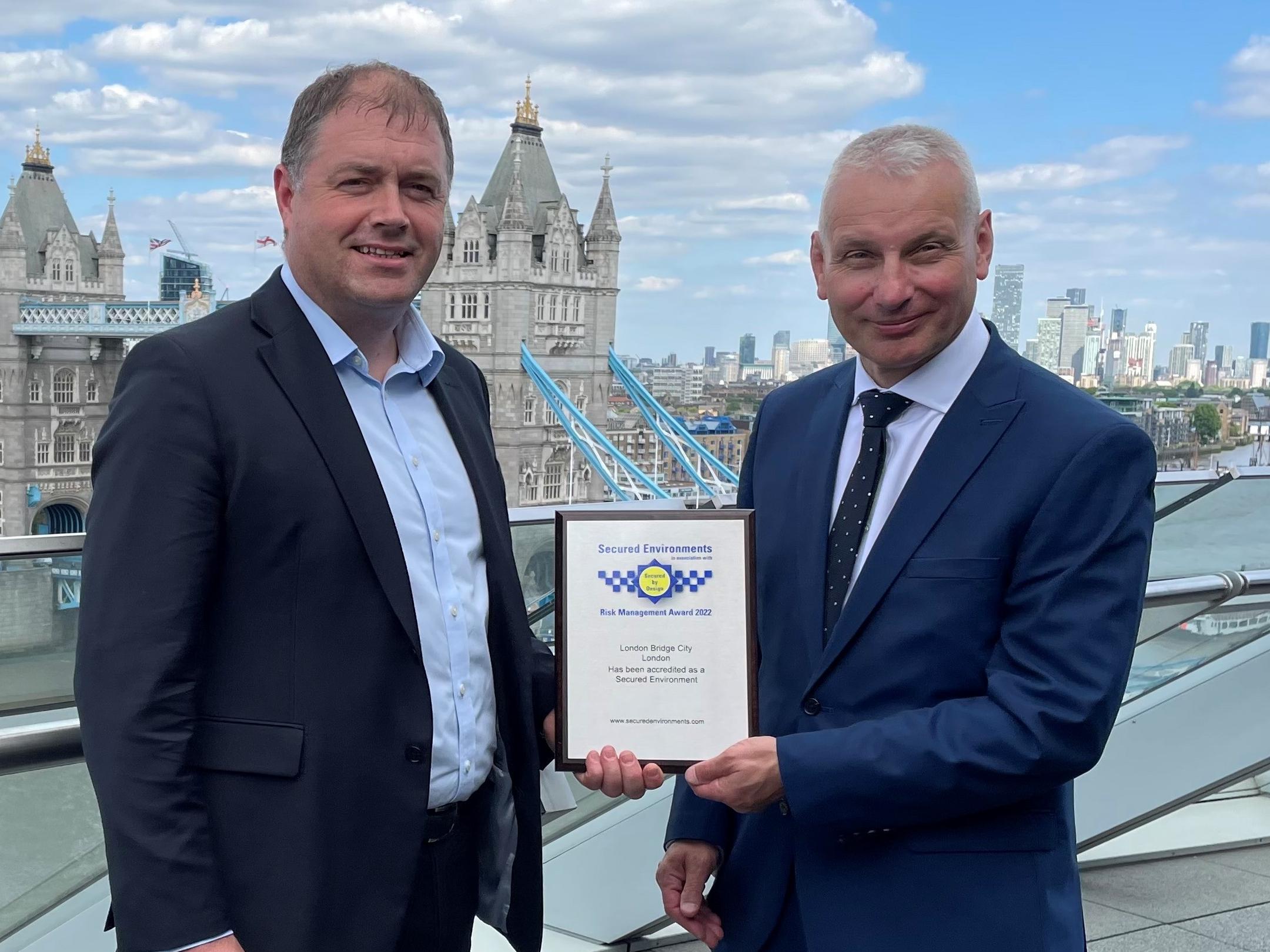 LONDON BRIDGE City has been presented with the prestigious Secured Environments Award by Guy Ferguson, CEO of Police Crime Prevention Initiatives. Located in an iconic neighbourhood surrounded by famous London landmarks, London Bridge City is a destination for shopping, entertainment and dining and hosts a range of residential and business premises.